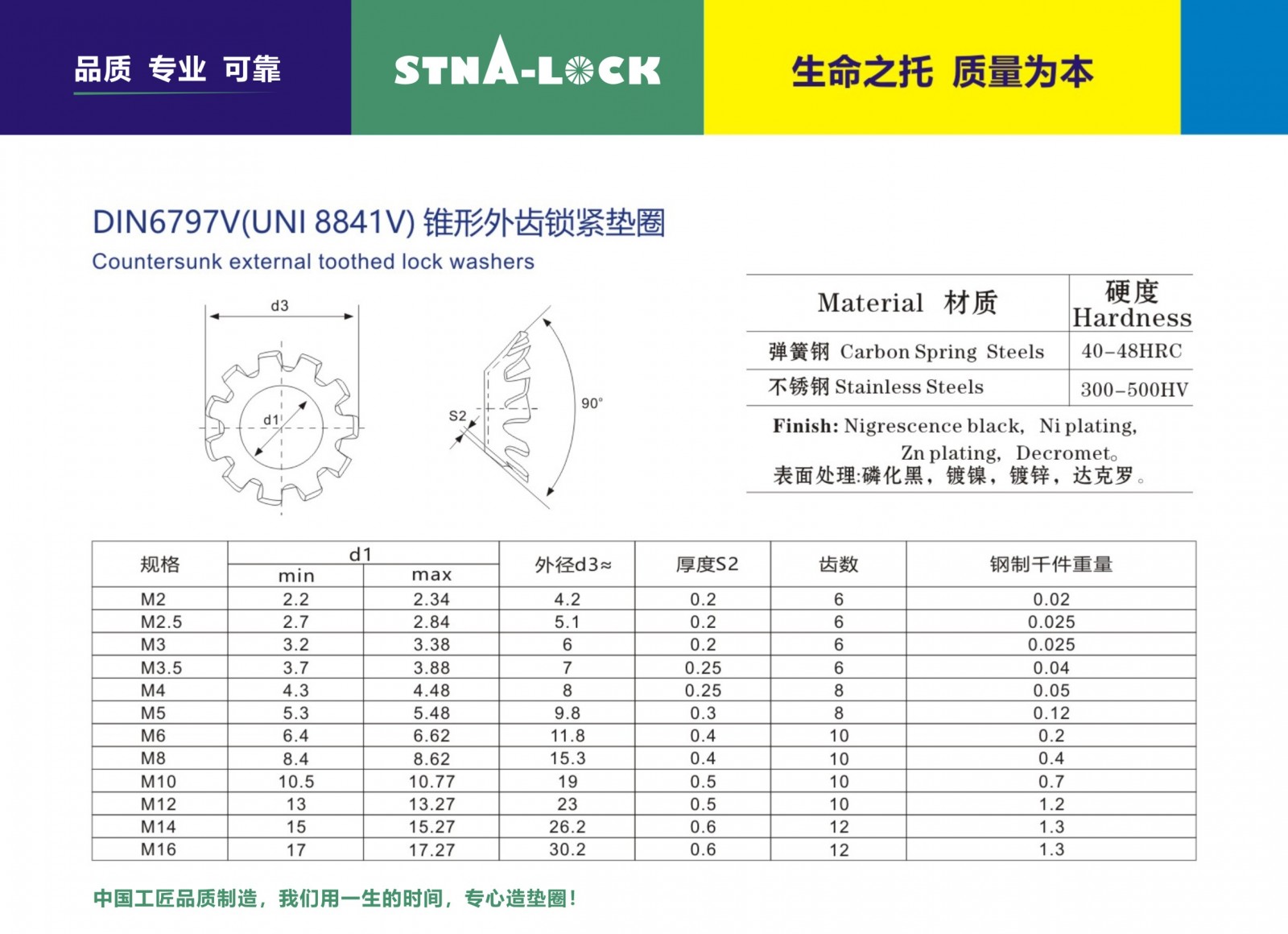 不銹鋼錐形外齒墊圈,執(zhí)行DIN6797V標準制造為,規(guī)格:根據(jù)客戶需求 選優(yōu)質(zhì)SUS304.SUS316不銹鋼材質(zhì),配合沉
