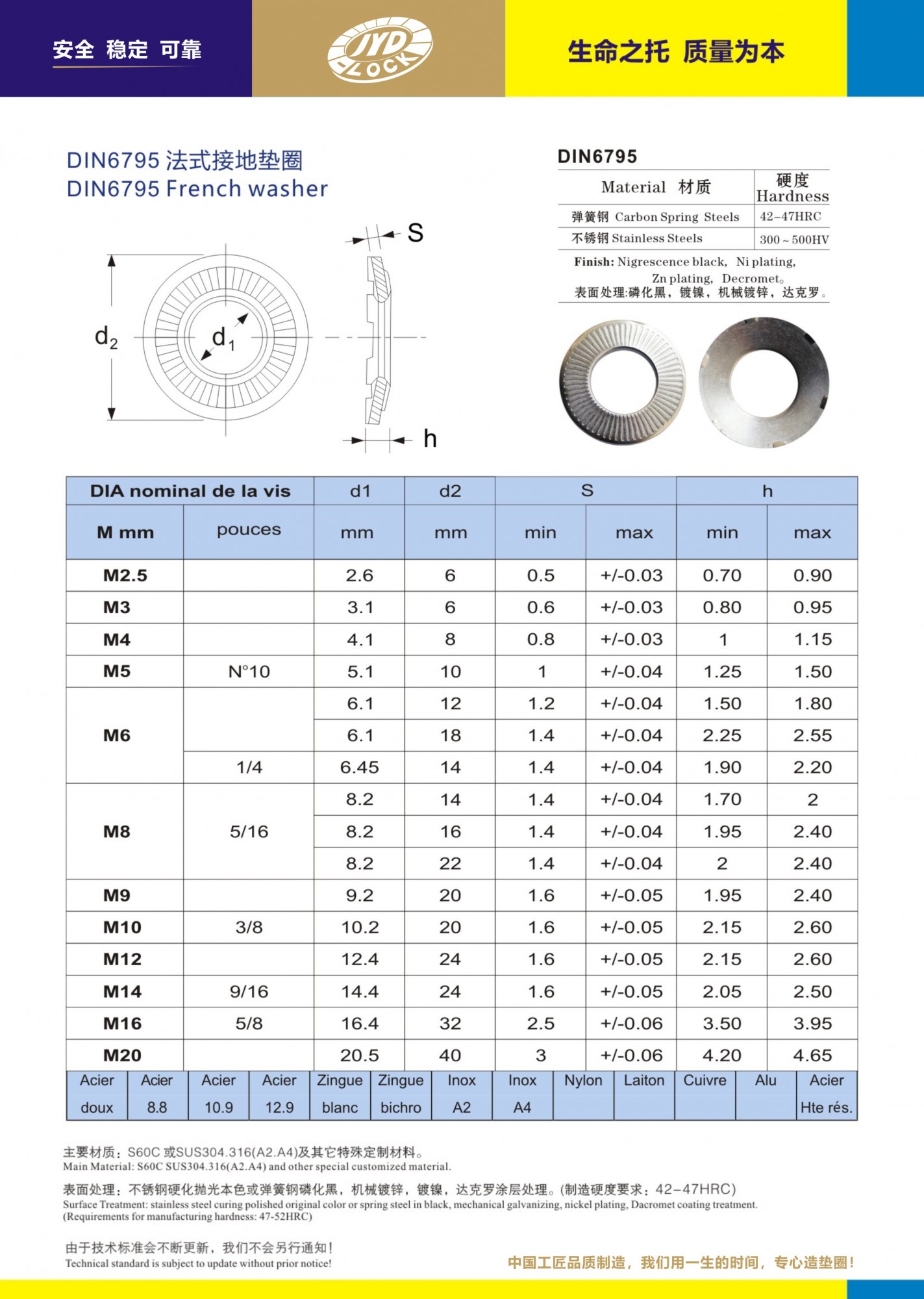 DIN6795是德國(guó)標(biāo)準(zhǔn)、該墊圈是一款法式鎖緊墊圈的改良設(shè)計(jì)產(chǎn)品、表面條紋有預(yù)緊防松作用。墊圈的背面設(shè)計(jì)有六個(gè)爪形剌破角!主要功能是在配合螺栓螺釘擰緊時(shí)可以剌破金屬基體表面!主要功能是剌破作用、因此也有人叫剌破墊圈、帶爪觸地墊圈!