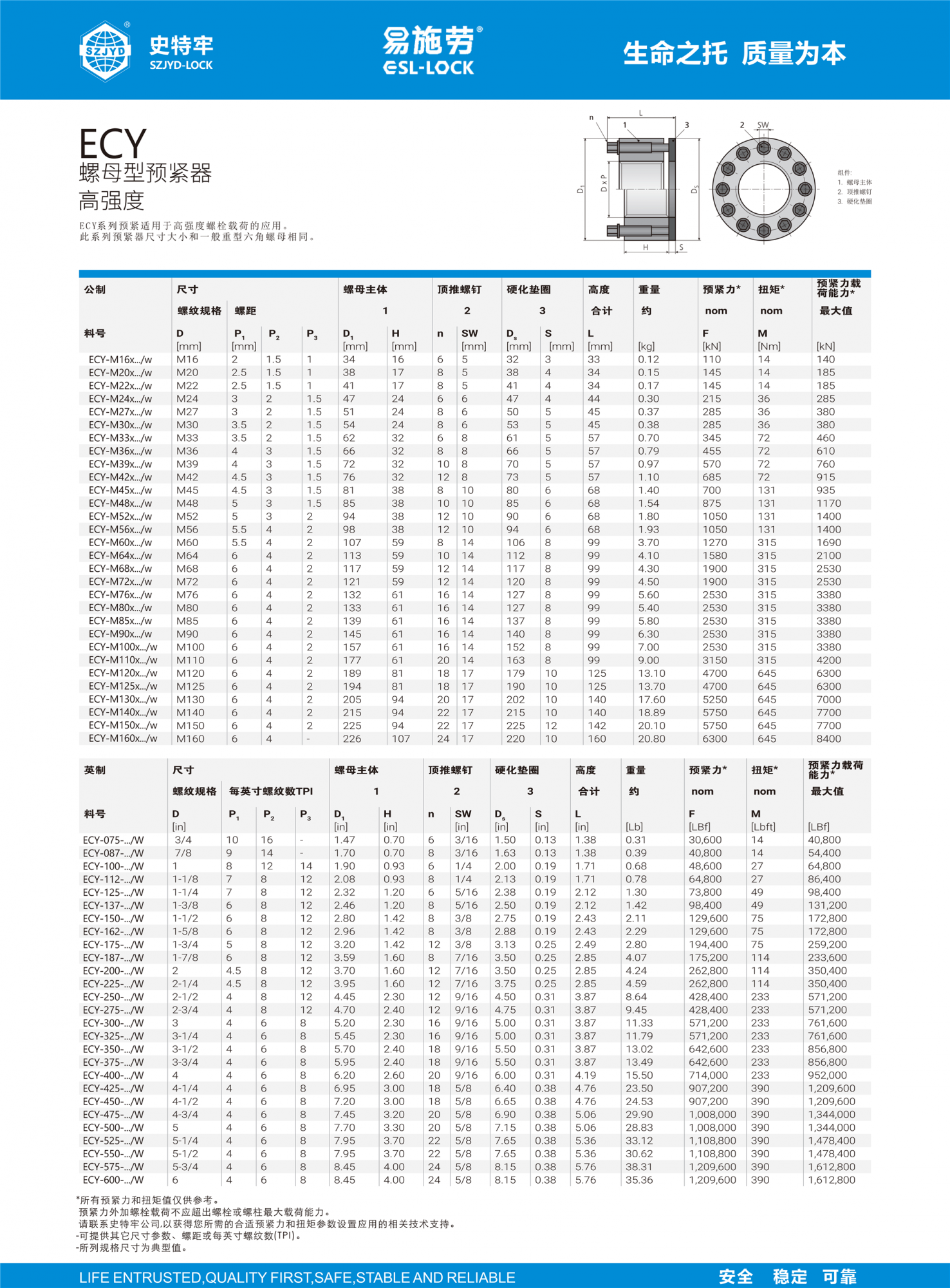 多頂推超級預緊器,可在很小空間安裝,使用簡單工具即可輕松預緊,節省安裝時間,ESL-LOCK品牌易施勞超級螺母具有完全的防松鎖緊功能,可多次拆卸重復使用。特別適用于M24規格以上大型螺栓鎖緊!一擰永固,永不松動!使用常規格為合金材料及特殊不銹鋼合金材料以及鎳基合金材料!更多了解歡迎咨詢我們.....