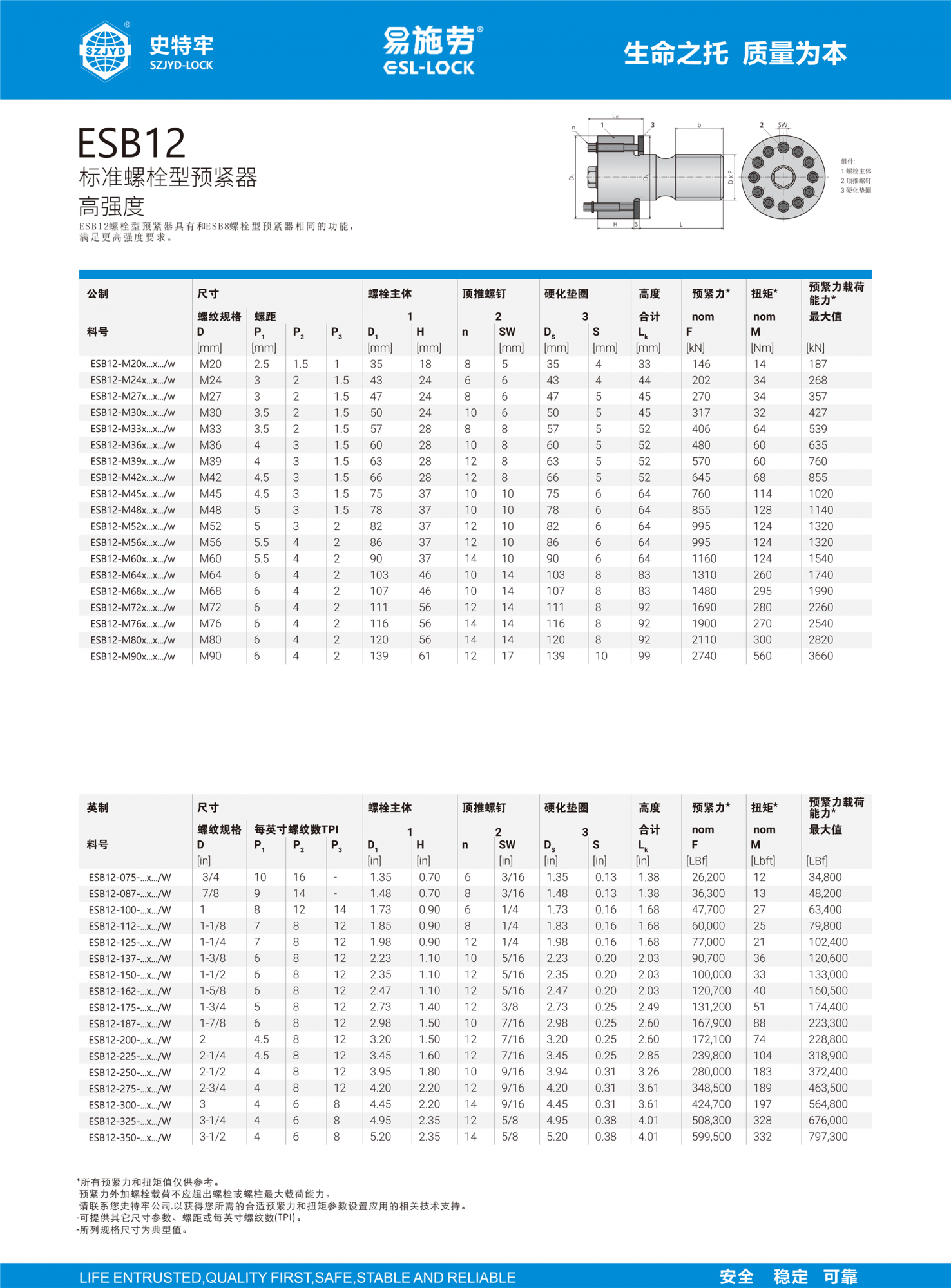 多頂推超級預緊器,可在很小空間安裝,使用簡單工具即可輕松預緊,節省安裝時間,ESL-LOCK品牌易施勞超級螺母具有完全的防松鎖緊功能,可多次拆卸重復使用。特別適用于M24規格以上大型螺栓鎖緊!一擰永固,永不松動!使用常規格為合金材料及特殊不銹鋼合金材料以及鎳基合金材料!更多了解歡迎咨詢我們.....
