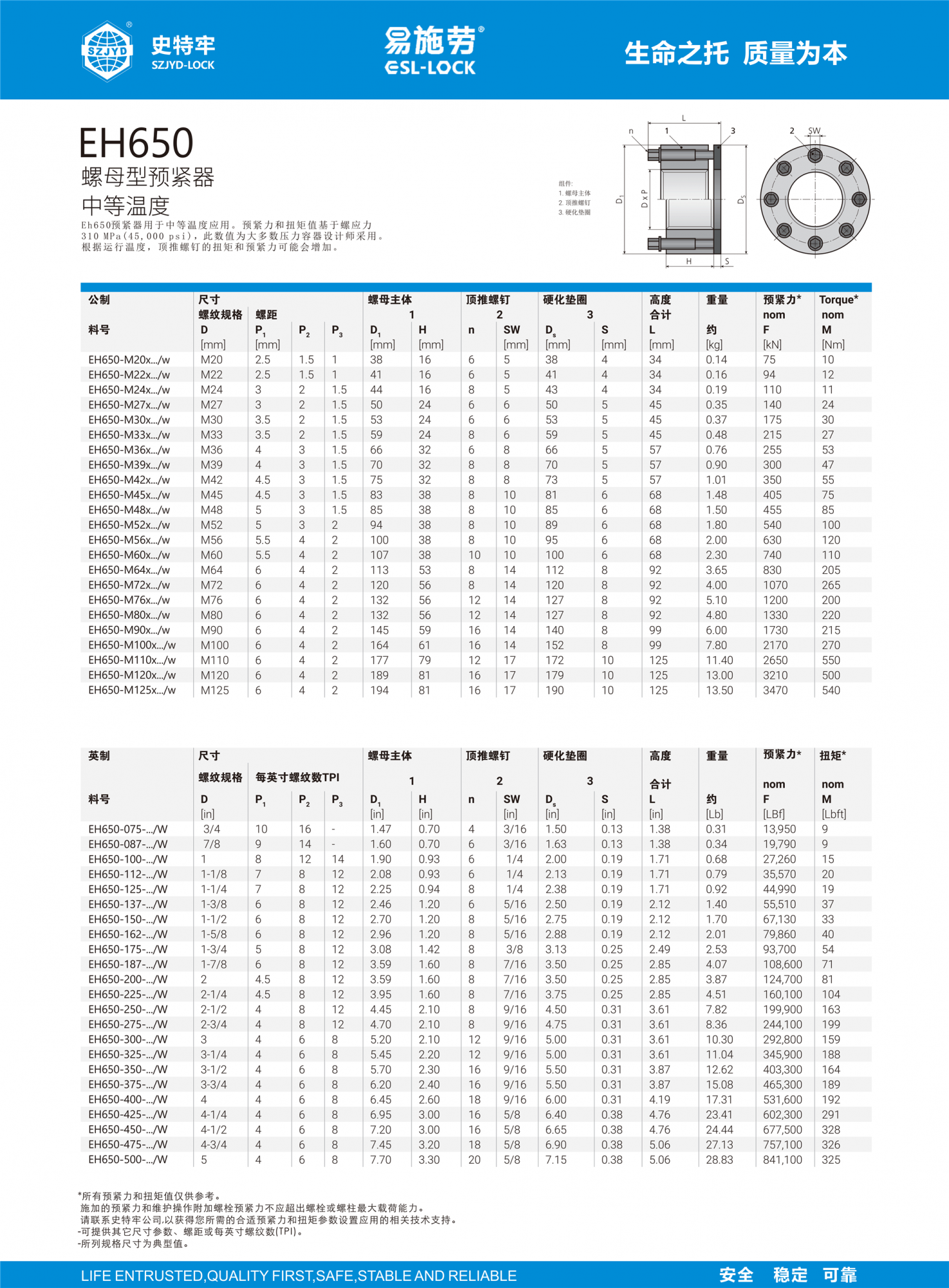 多頂推超級預緊器,可在很小空間安裝,使用簡單工具即可輕松預緊,節省安裝時間,ESL-LOCK品牌易施勞超級螺母具有完全的防松鎖緊功能,可多次拆卸重復使用。特別適用于M24規格以上大型螺栓鎖緊!一擰永固,永不松動!使用常規格為合金材料及特殊不銹鋼合金材料以及鎳基合金材料!更多了解歡迎咨詢我們.....